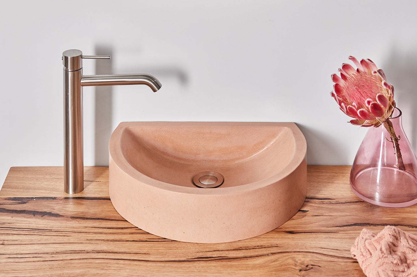 Hand-packed in Torquay, a stone’s throw away from our workshop, the organic nature of this beautiful concrete bathroom sink from Mayde Concrete is the perfect compliment to a wooden vanity. The method of hand-packing this concrete basin creates a beautiful and unique texture.