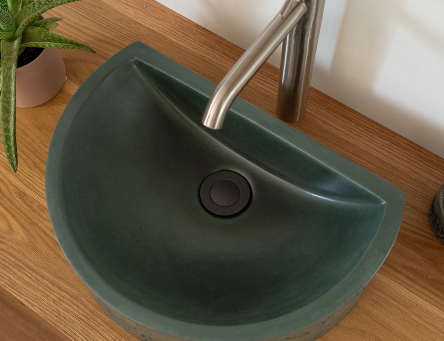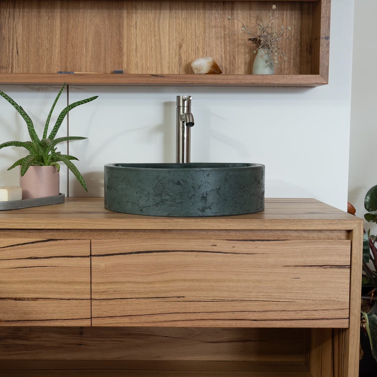 Hand-packed in Torquay, a stone’s throw away from our workshop, the organic nature of this beautiful concrete bathroom sink from Mayde Concrete is the perfect compliment to a wooden vanity. The method of hand-packing this concrete basin creates a beautiful and unique texture.