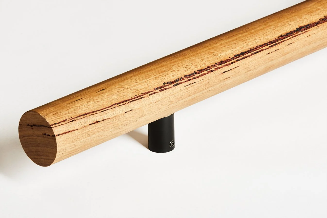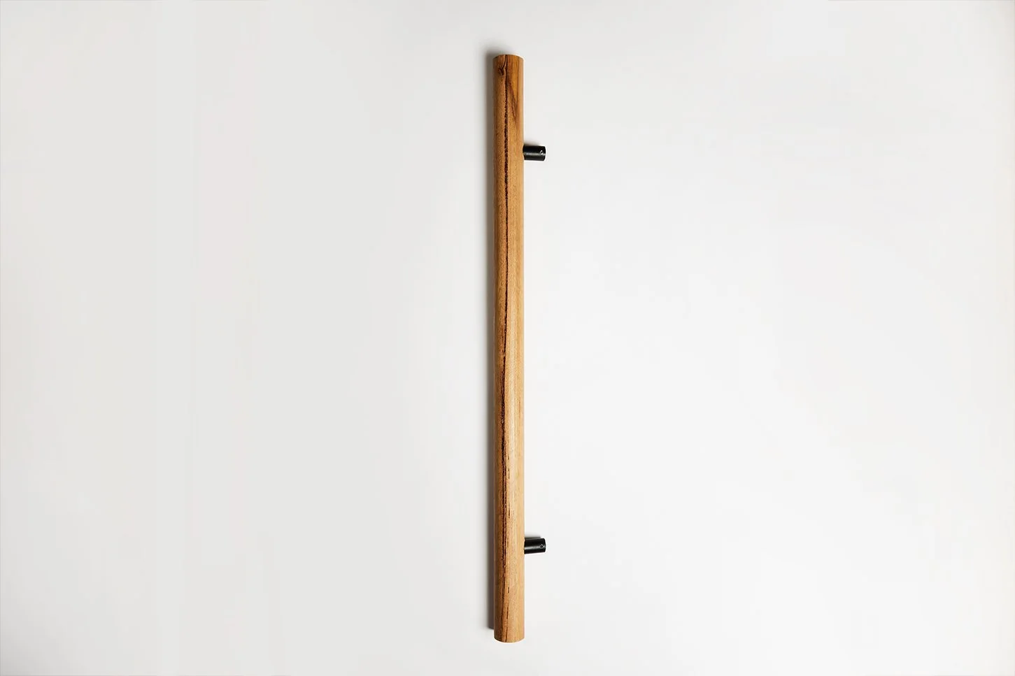 Expertly crafted by our furniture makers from Australian hardwood timber, each Addiscott front door handle showcases wood grain pattern quintessential to Messmate, making every piece completely unique. The sap line features are enhances by the black fixing detail of the handle.
