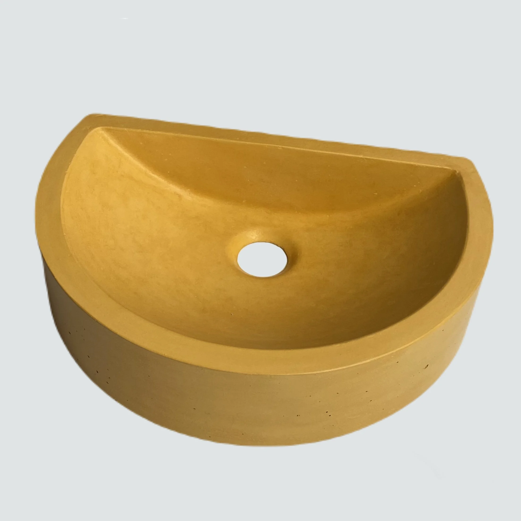 The basin is pictured here in MUSTARD but is available in a wide range of colours.