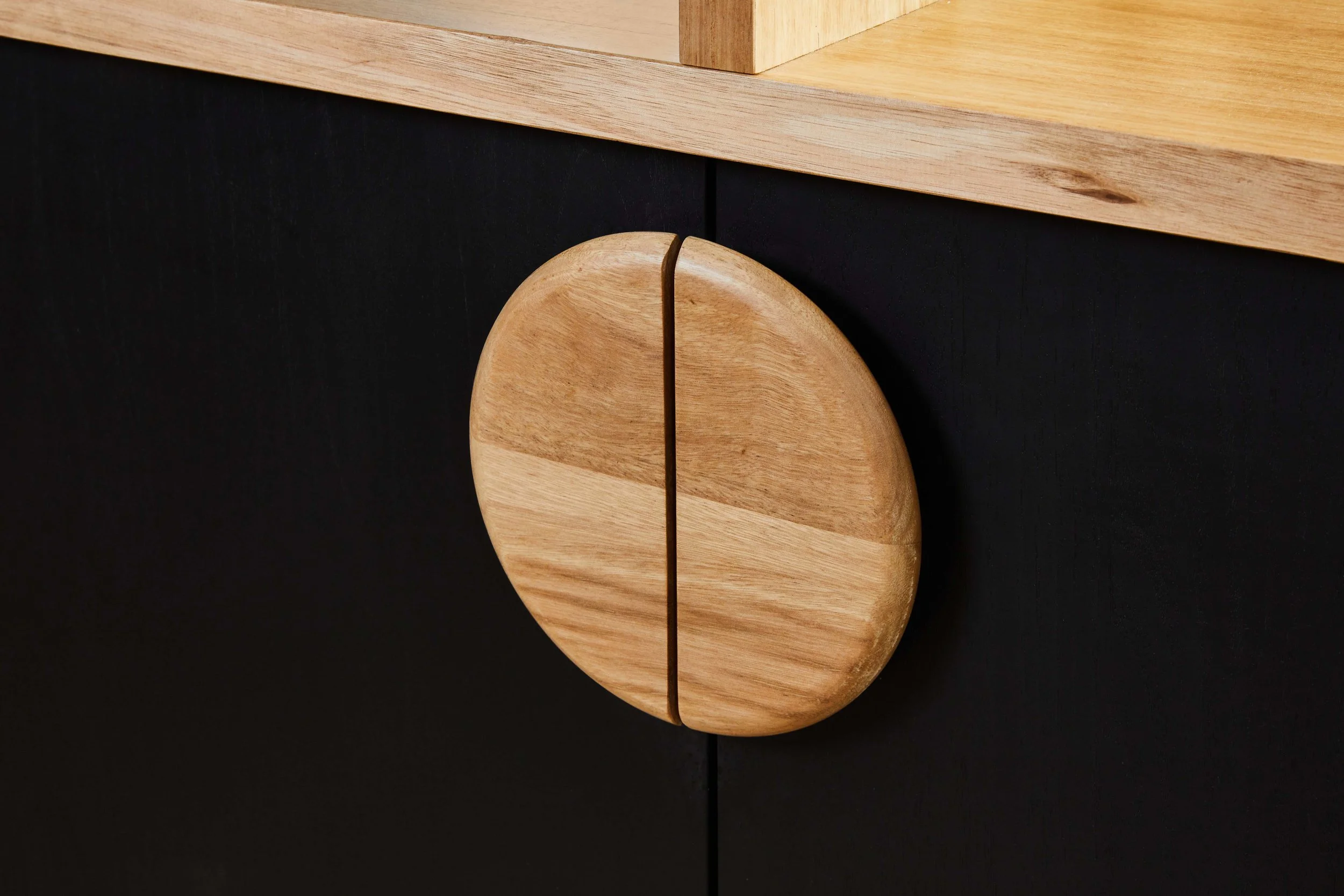 Handmade to pair seamlessly with our bespoke timber furniture, the Crescent Wooden Handle is available in the same range of sustainable Australian hardwoods used across our vanities, sideboards and cabinetry. Whether you’re adding a hand made wooden front door handle to your entrance or styling it on a wardrobe, its gently curved edge adds a soft, organic touch that feels both contemporary and timeless.