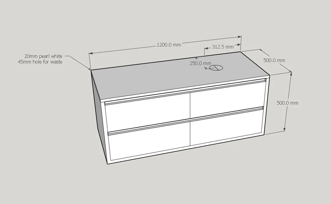 For bathroom furniture and joinery projects, we recommend sharing the drawings with your tradespeople to ensure the design works perfectly for your space.